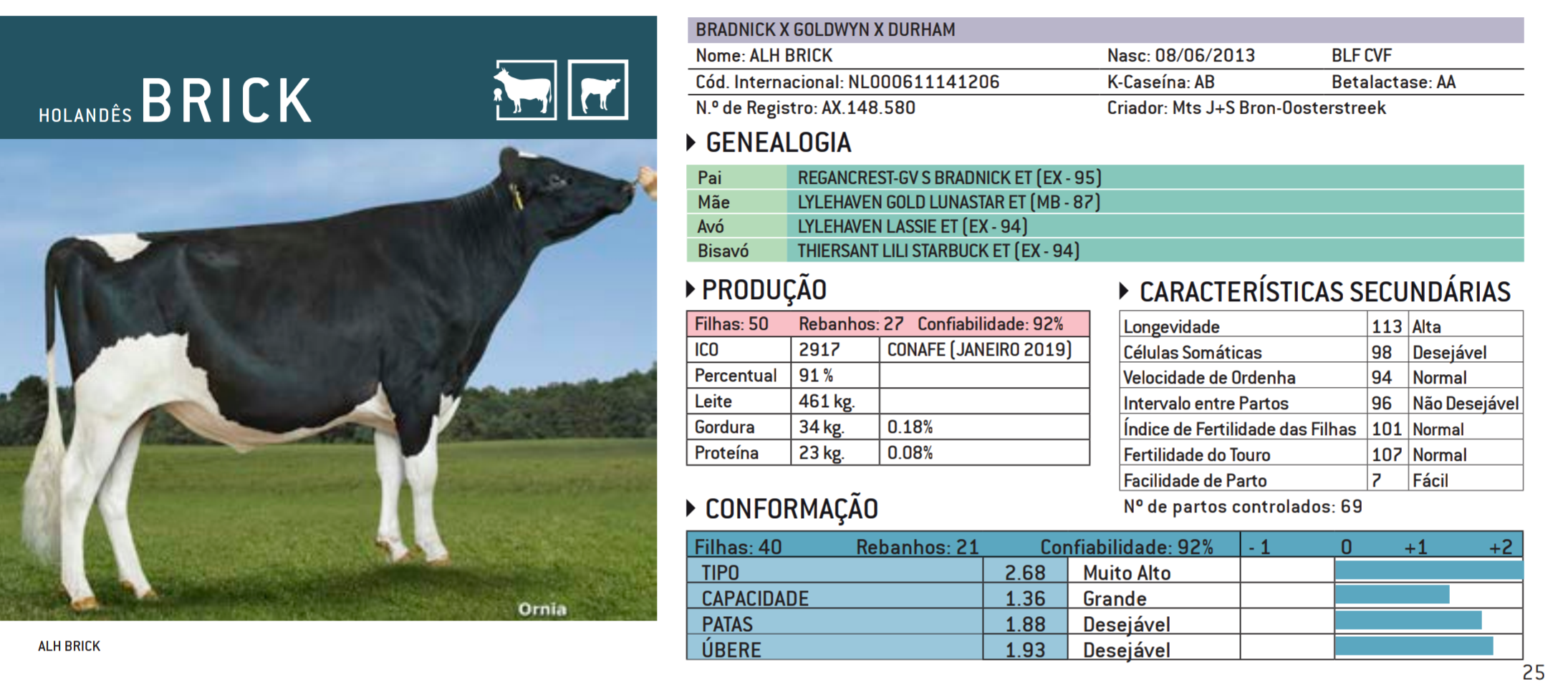 Extraordinária conformação. Úberes fora de série e muita longevidade;